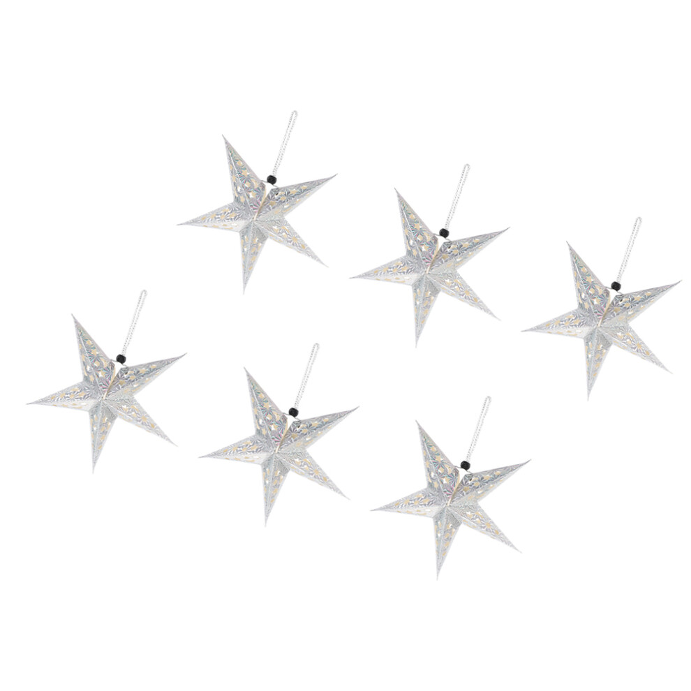 6Pcs Silver Star-Shaped Paper Ceiling Lamp Shades for Festive Decor