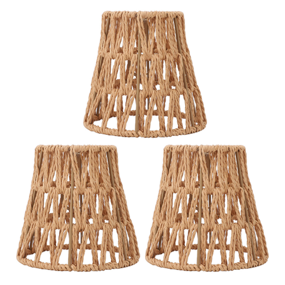 3PCS Faux Rattan Lamp Shades Bohemian Style Paper Braided E14 Bulb Clip On Decorative Lampshade for Table Floor Lamps