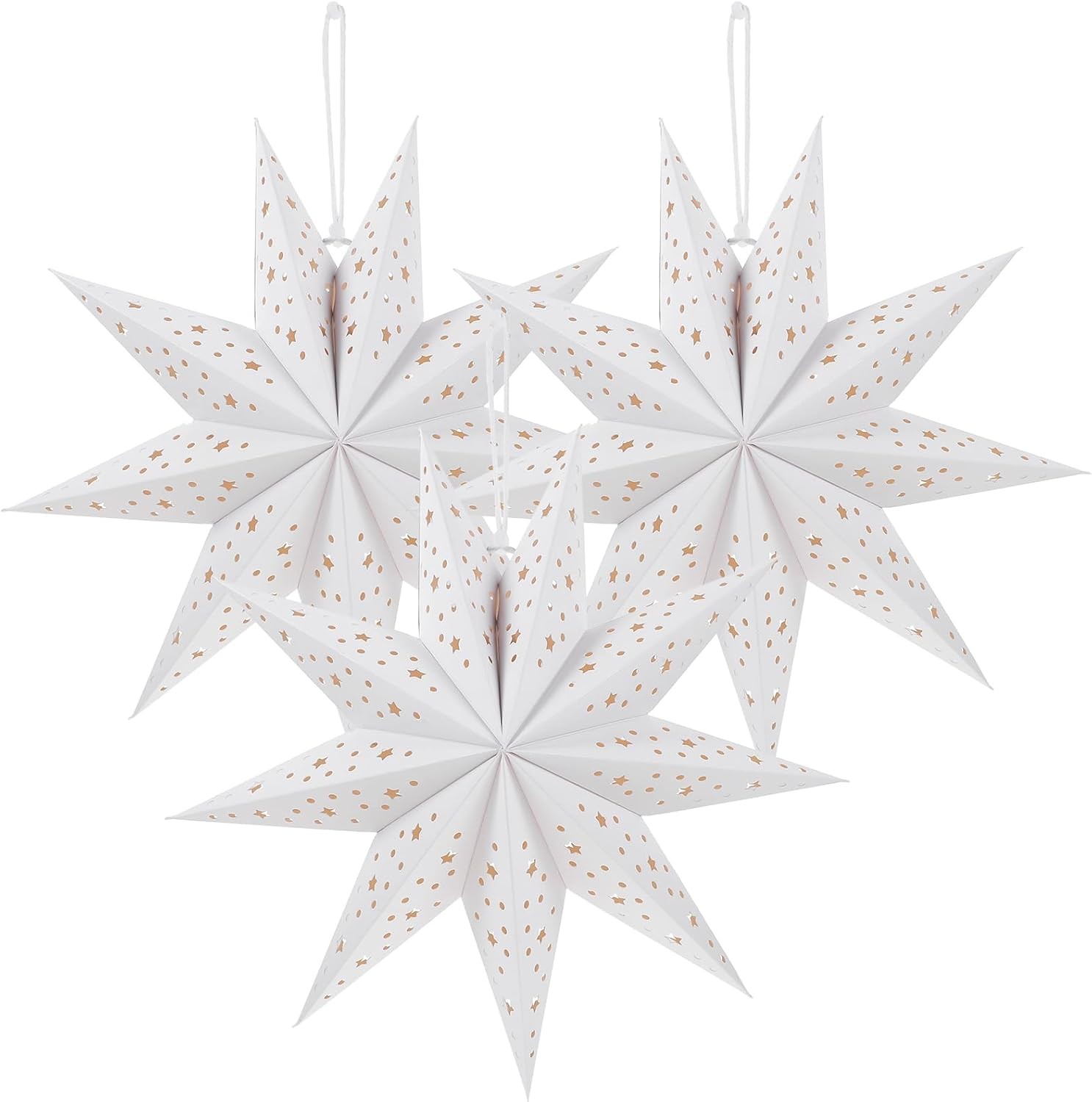 DOITOOL 3Pcs Nine-pointed Star Paper Lamp Shades Decorative Hanging Lantern Covers for Christmas Festivals Create Warm Atmosphere White