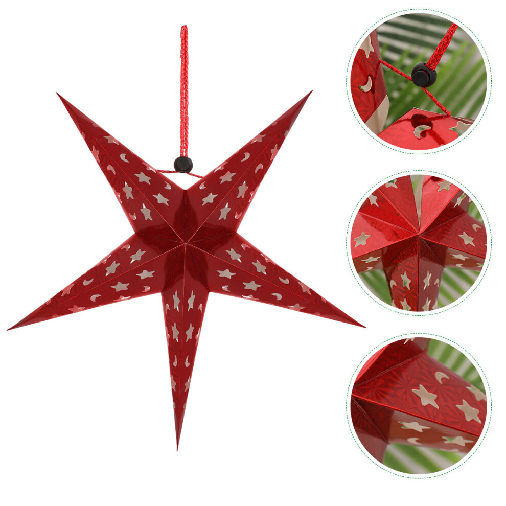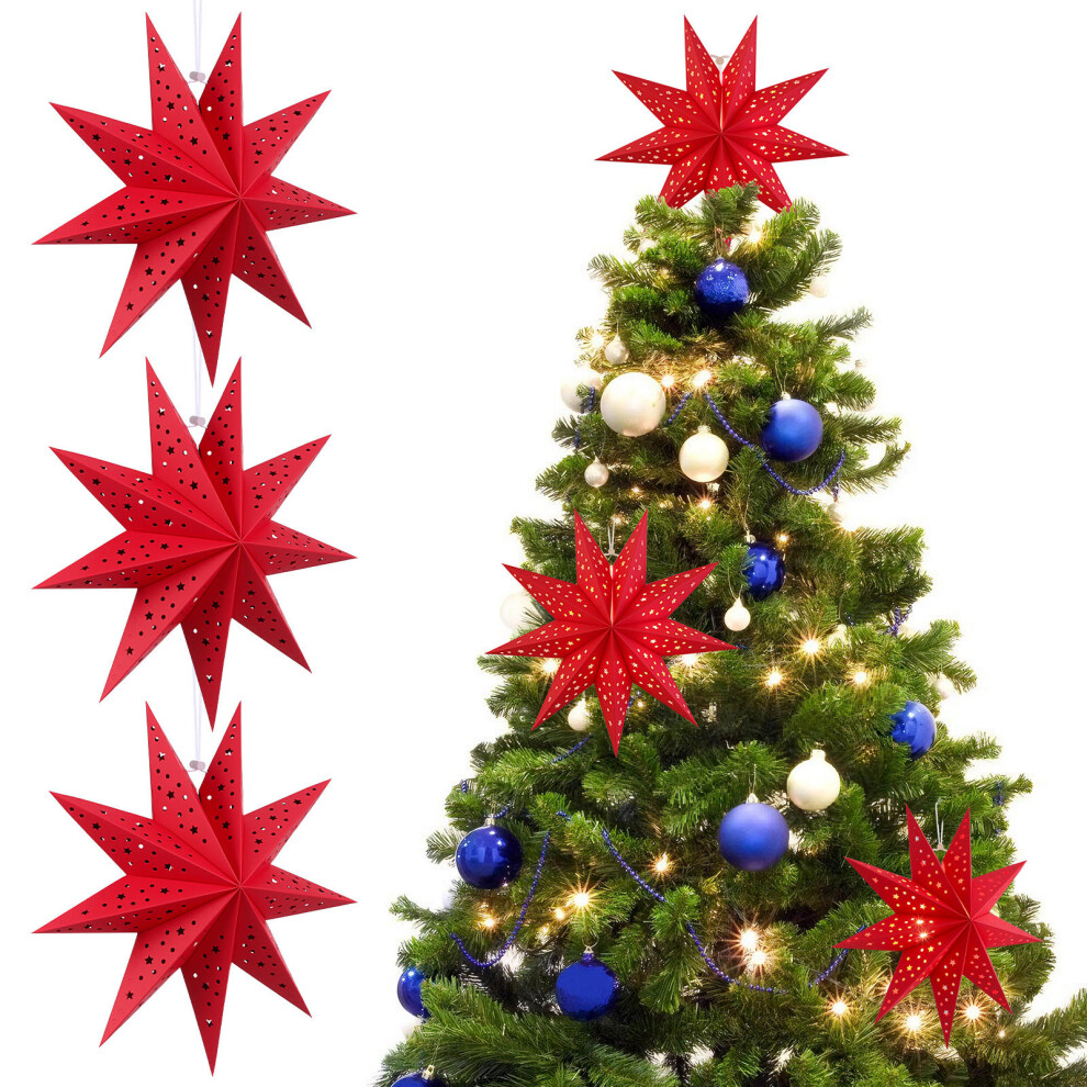 3pcs Christmas Star Lanterns, Red NinePointed Paper Lamp Shades, Reusable Holiday Home Decor
