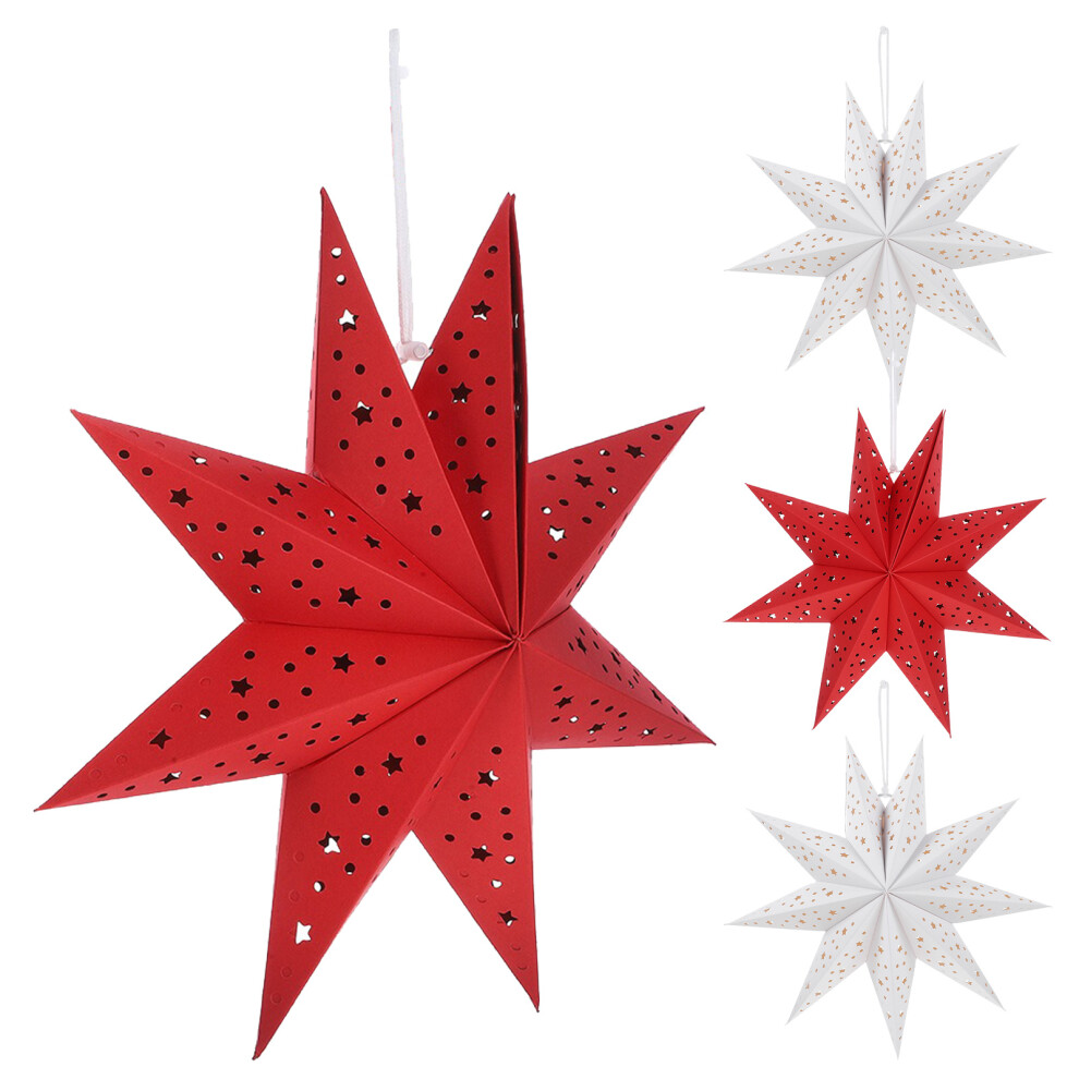 16Pcs Hanging Paper Star Lamp Shades Nine-Point Indoor Christmas Decor