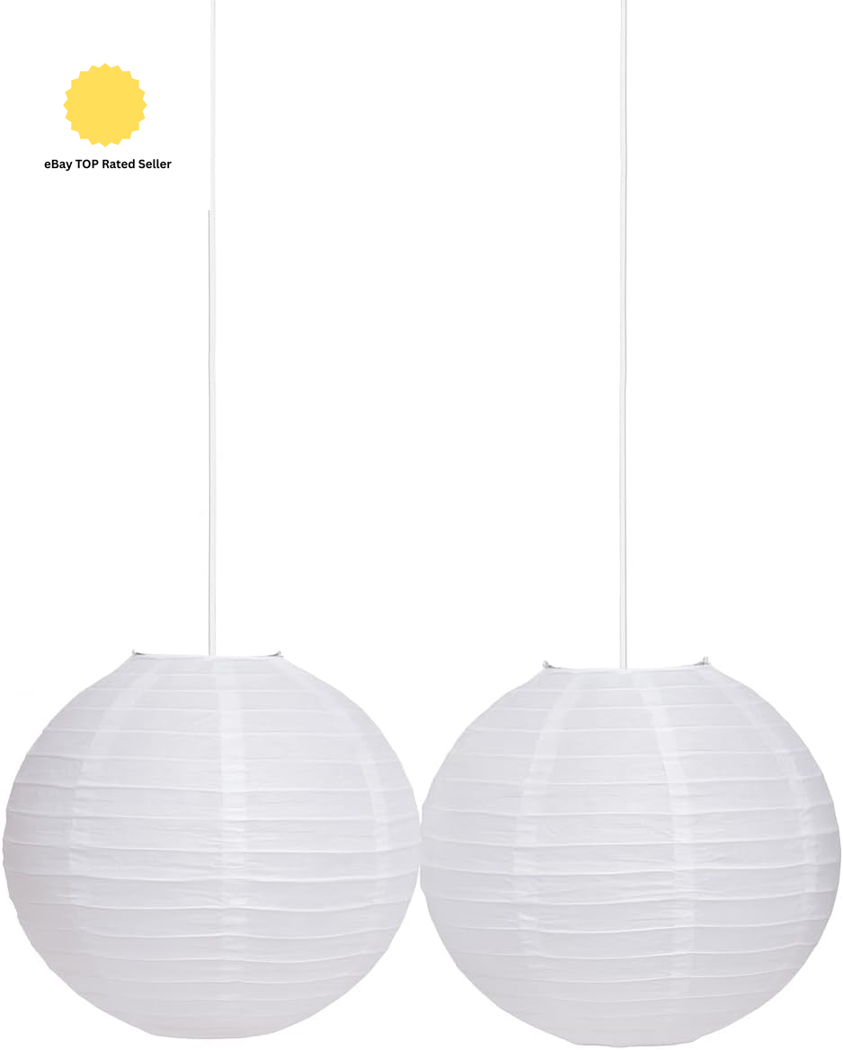 2 Pcs White Paper Lanterns, Paper Lampshades for Ceiling Lights, 12 inch Ribbed Style Lampshade for Home Party Decorations (2 White Lanterns)