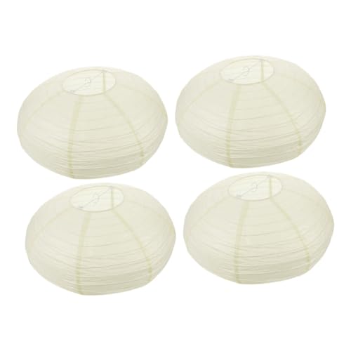 PENIKOKO 4pcs Beige Oval Folding Paper Lantern Lampshades Japanese Style Vintage Living Room Bedroom Paper Light Shade Decorative Lampshade for Home and Festival