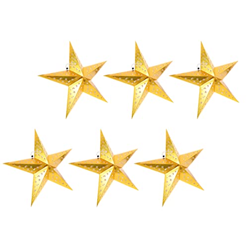 Angoily 6Pcs Golden Star-Shaped Paper Ceiling Lampshades Hanging Decorations for Theme Parties and Festivals, Creative and Delicate Christmas Festival Pendant Ornament