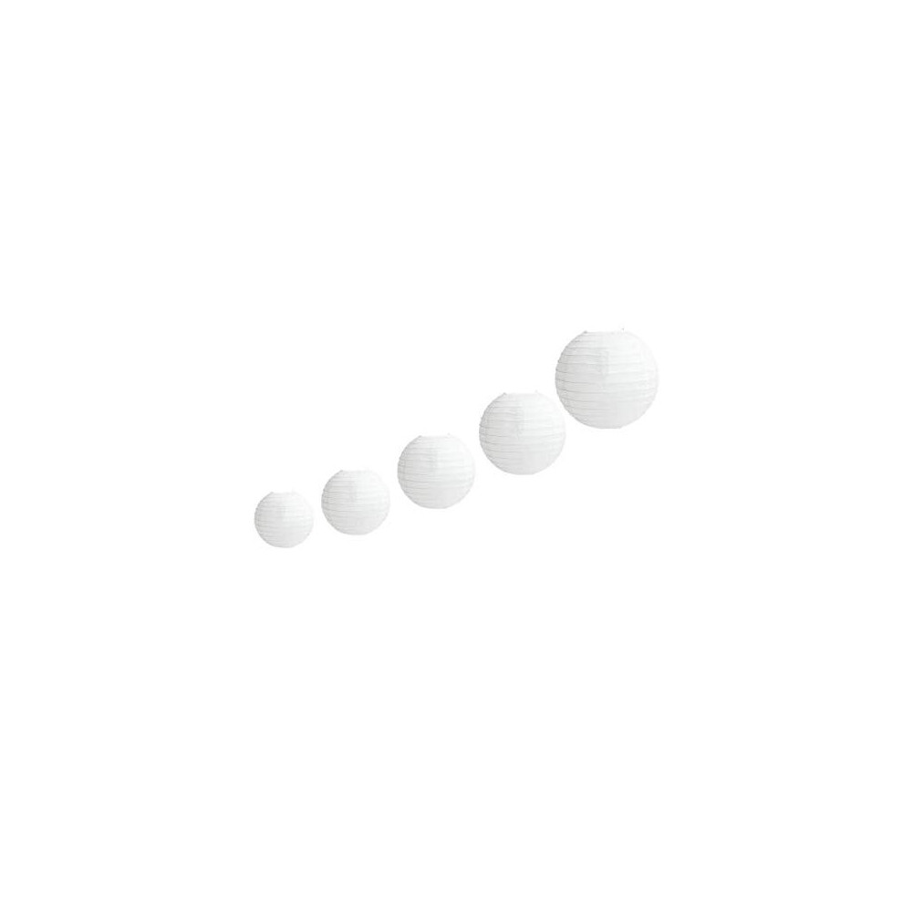 5 PCS Paper Lanterns, Round White Paper Lantern with Wire Ribbing, Different Sized White Lampshades, 4" 6" 8" 10" 12" Paper Lampshades for Weddings,