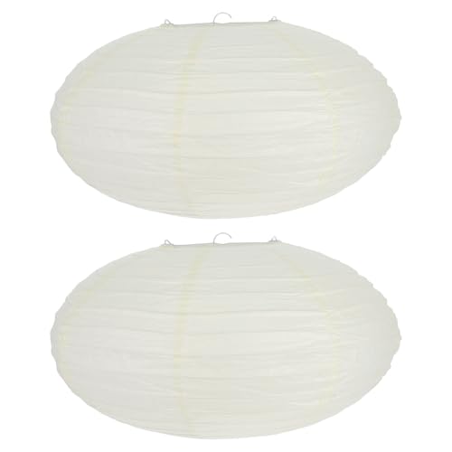 Aferenili 2Pack White Oval Paper Lantern 18” Paper Lantern Lamp Shade, White Hanging Paper lamp Shade Easy to Assemble(White-18Inch-2pcs)