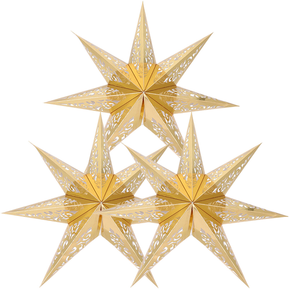 VILLCASE Star Paper Lantern Lampshades 3Pcs 7-Pointed Hollow Out Star Light Shade 45Cm Gold for Shopping Mall Window Decoration