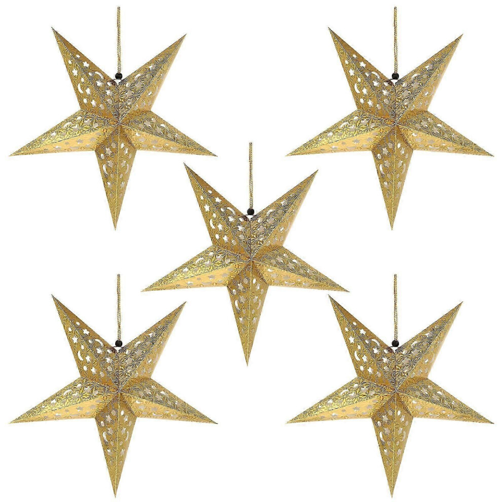 MAGICLULU 3pcs 45cm Gold 7-pointed Hollow Paper Star Lantern Lampshades Hanging Decorative Star Light Covers for Window Display and Holiday Home Decor