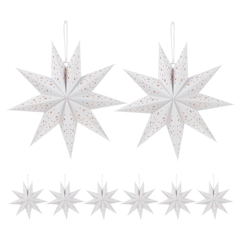 Tofficu 8pcs White Nine-pointed Paper Star Lanterns Origami Lamp Pendant Soft Glow Light Shade for Christmas Year Wedding Party Decorations