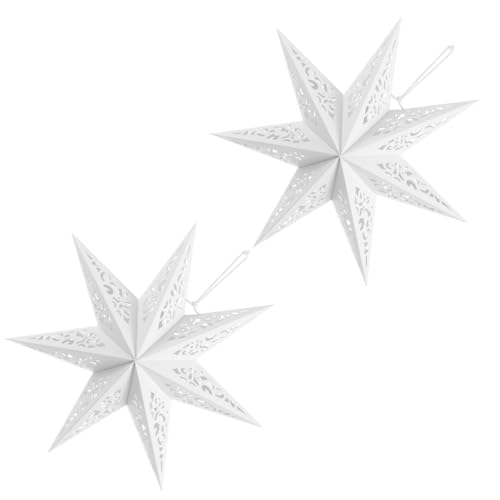 BAZEITFLOW 2pcs White Hollowed Seven-point Star Paper Lampshades Lightweight Star Light Shade for Ceiling Pendant Table Lamps Versatile Home Wedding Party Decor