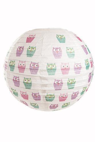 Owl Design Ribbed Paper Globe Lamp Light Shade Childrens Kids Girls Bedroom