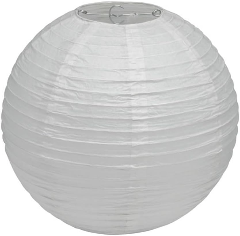 20cm Round White Paper Light Shade Lantern | Classic Bamboo-Style Ribbed Paper