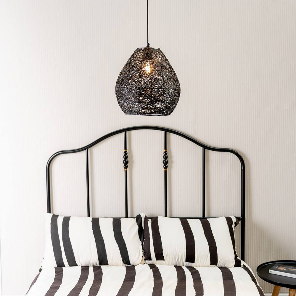 ValueLights Hopper Black Paper Rope Easyfit Pendant Light Shade with Bulb | Size: 14 inches