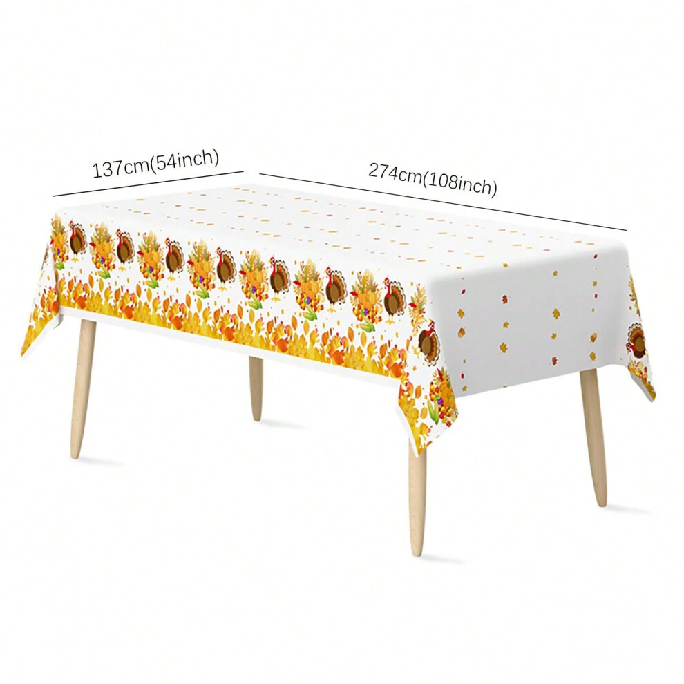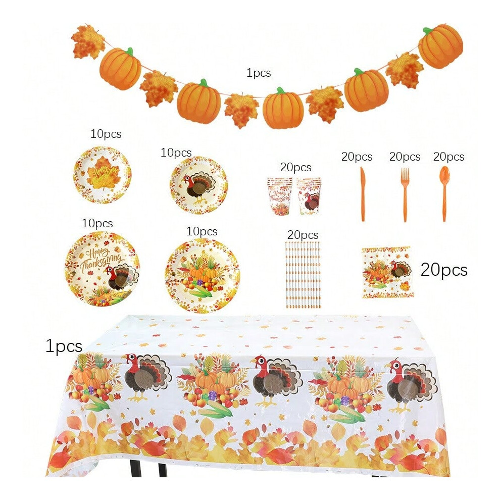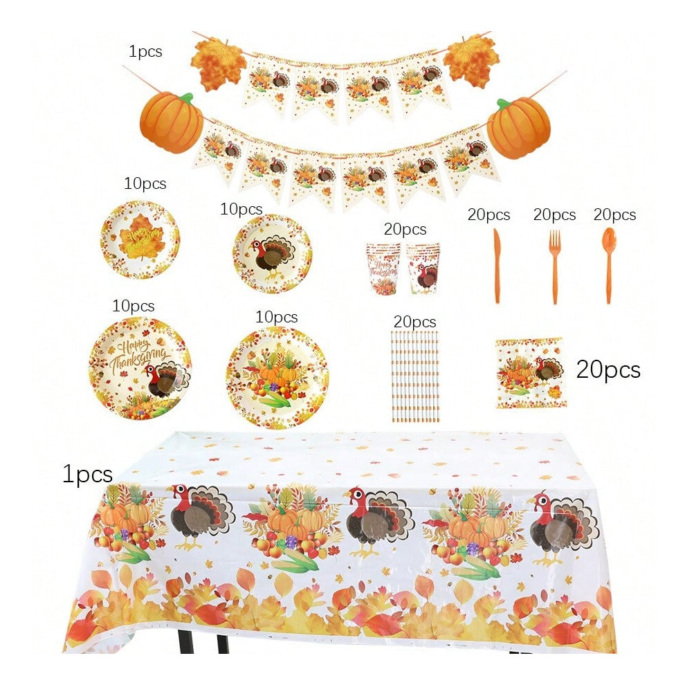 (Thanksgiving tablecloth 1PCS) Thanksgiving themed flag decoration disposable turkey pumpkin party tableware set maple leaf paper plate paper towel