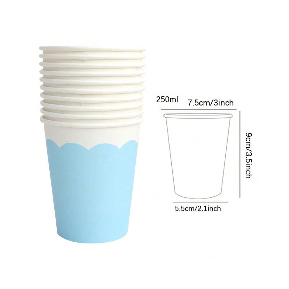 (10 light blue paper cups) Blue paper plate, paper cup, paper towel set children's birthday holiday party disposable tableware paper plate dinner plat