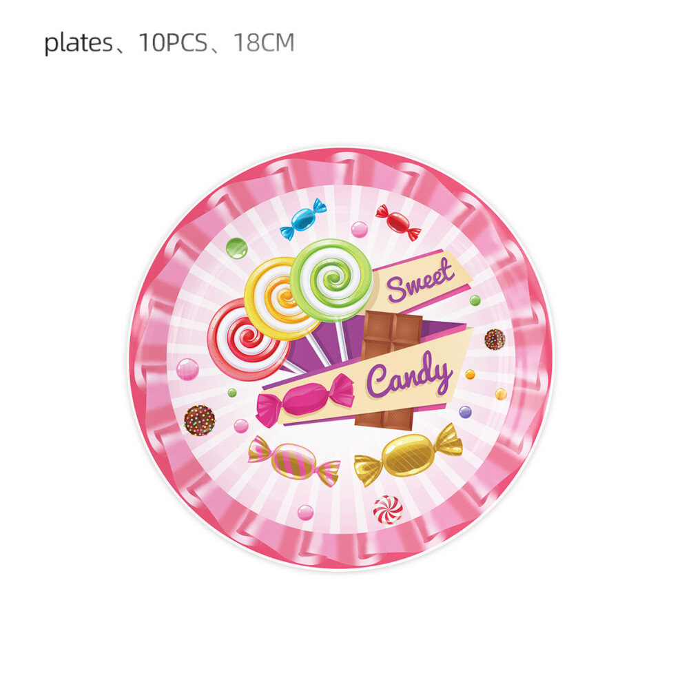 (7-inch 10 pieces) Lollipop pink girl birthday party decoration candy cake insert paper plate paper towel tablecloth tableware arrangement