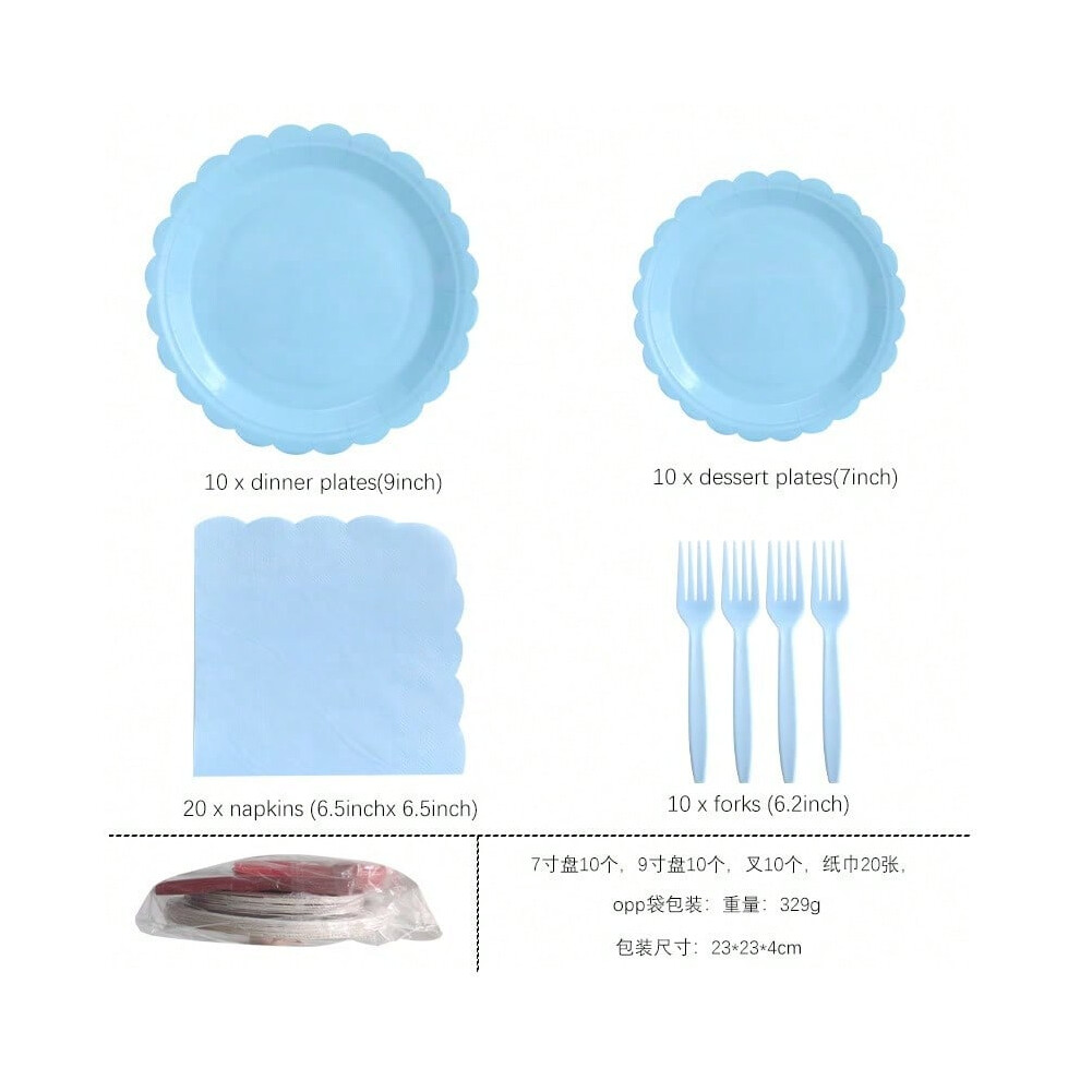 (10 light blue forks) Blue paper plate, paper cup, paper towel set children's birthday holiday party disposable tableware paper plate dinner plate