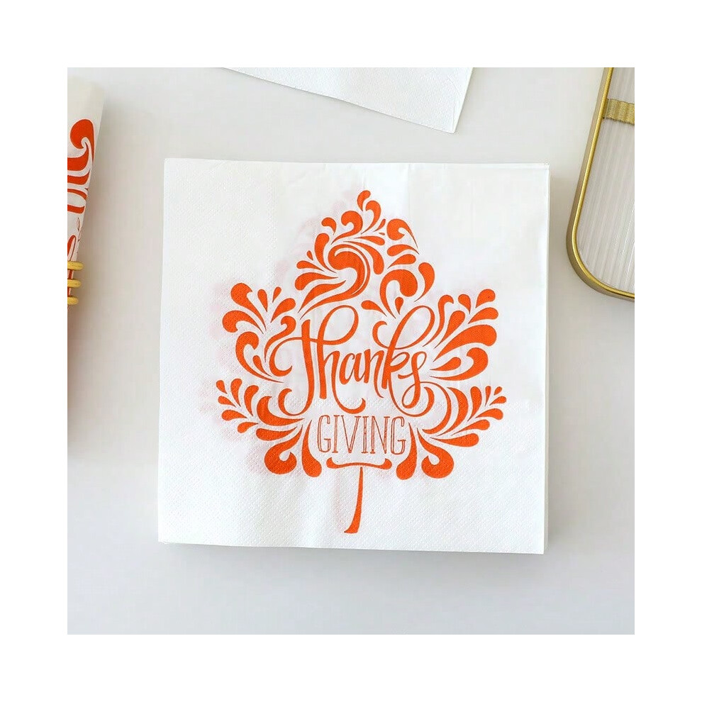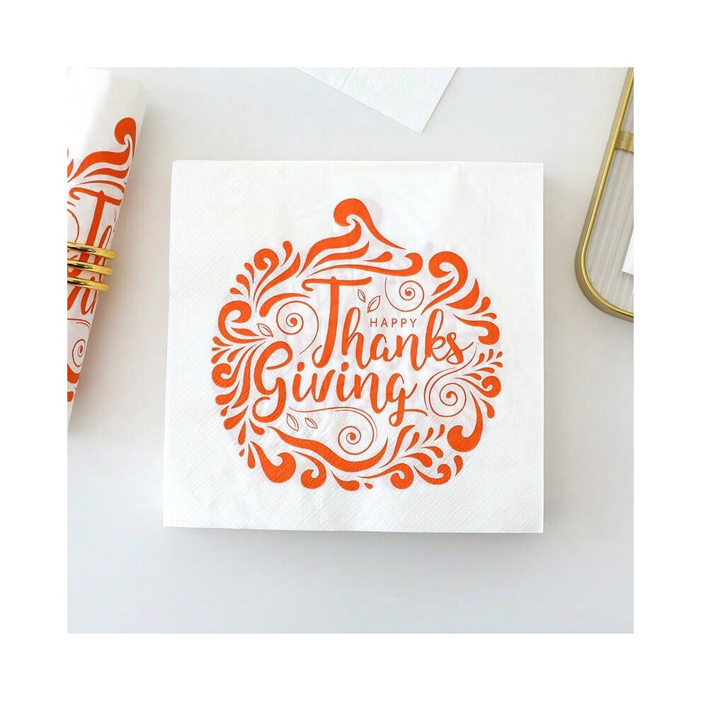 (Pumpkin tissue 25 sheets) Thanksgiving themed flag decoration disposable turkey pumpkin party tableware set maple leaf paper plate paper towel