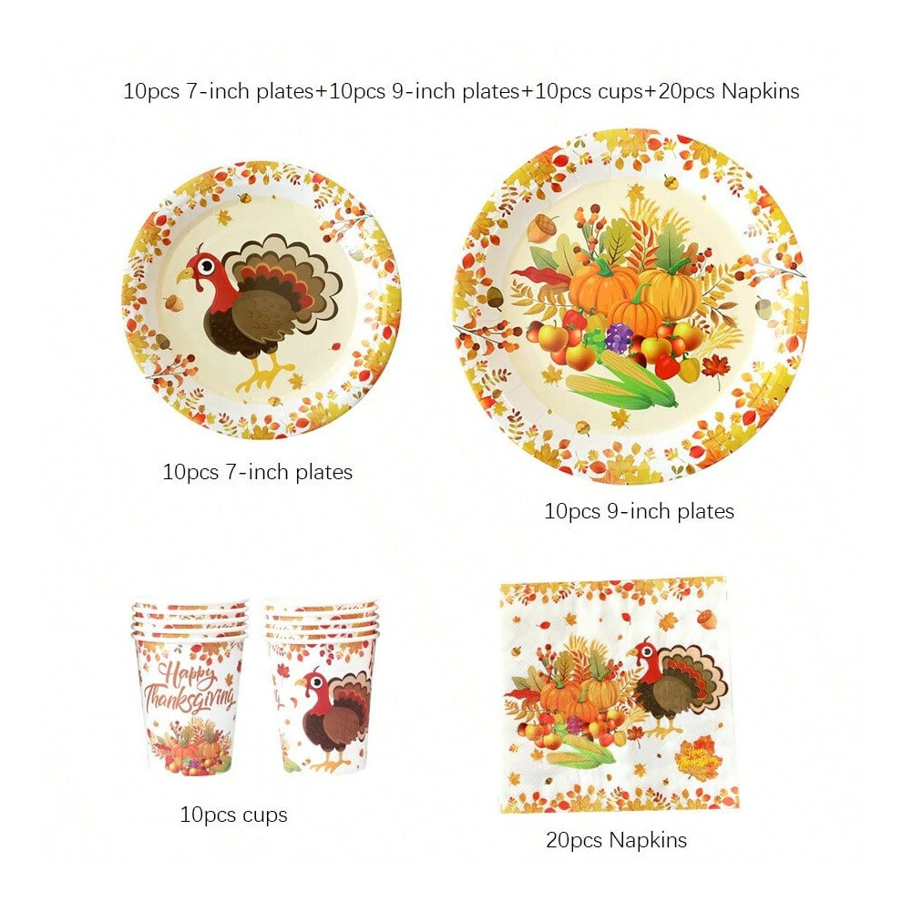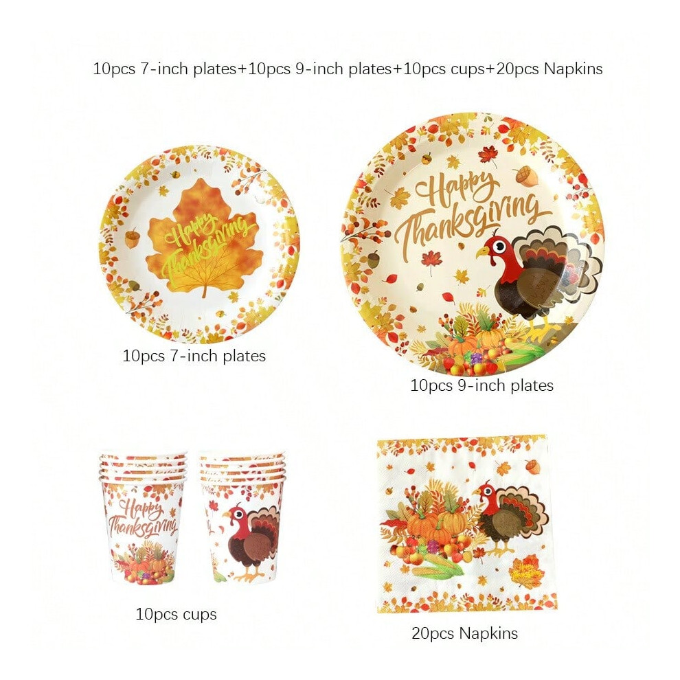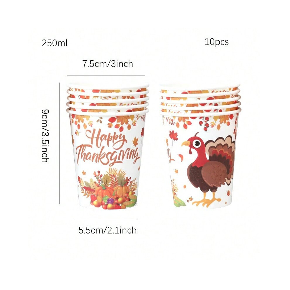 (10 Thanksgiving paper cups) Thanksgiving themed flag decoration disposable turkey pumpkin party tableware set maple leaf paper plate paper towel