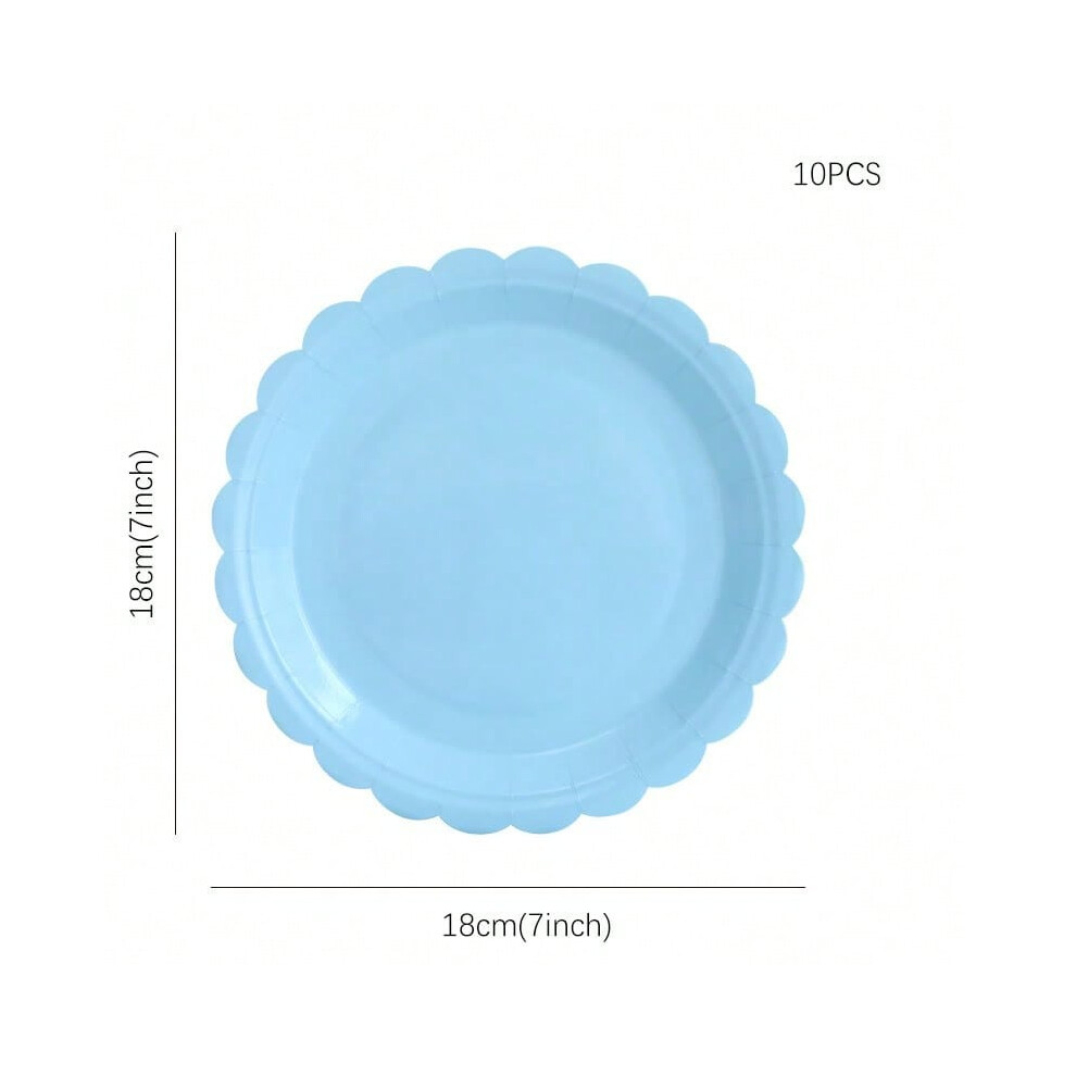 (Light blue 7-inch plates (10 pieces)) Blue paper plate, paper cup, paper towel set children's birthday holiday party disposable tableware paper plate