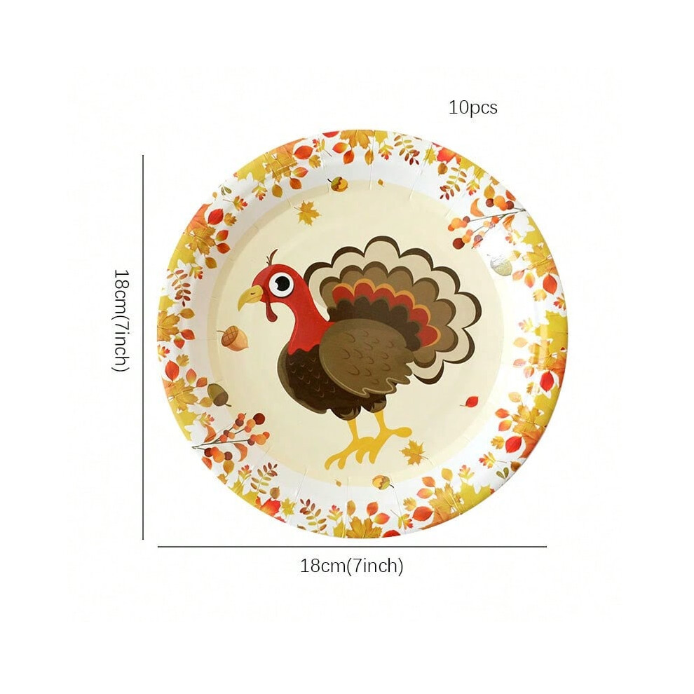 (Thanksgiving turkey 7-inch plate 10) Thanksgiving themed flag decoration disposable turkey pumpkin party tableware set maple leaf paper plate paper t