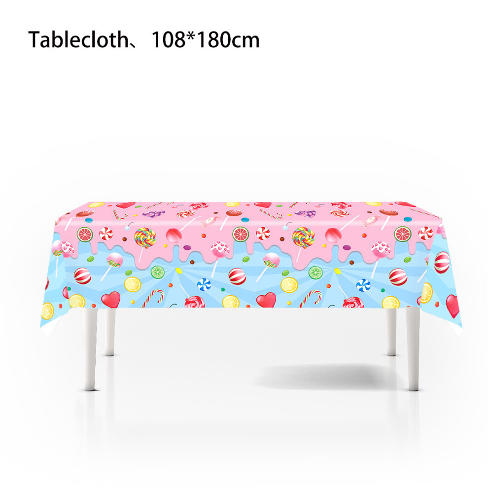 (1pcs wallpaper) Lollipop pink girl birthday party decoration candy cake insert paper plate paper towel tablecloth tableware arrangement