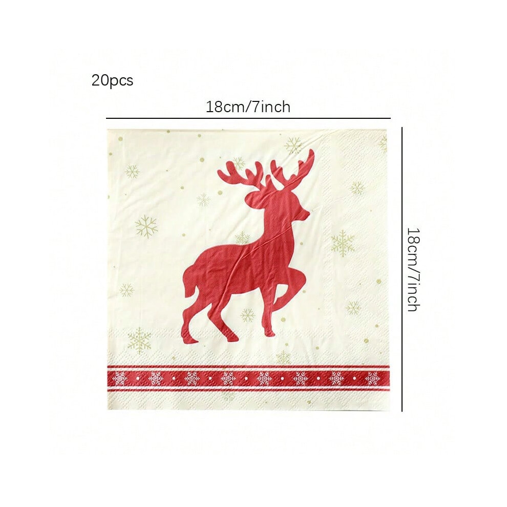 (Elk tissue 20 sheets) Christmas Red Elk Paper Plate Paper Cup Paper Towel Disposable Dinner Plate Tablecloth Holiday Decoration Party Tableware Set