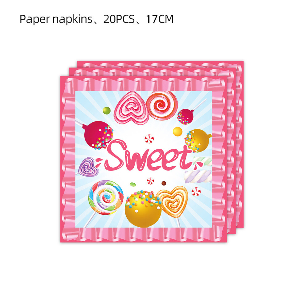 (20 pieces of paper towels) Lollipop pink girl birthday party decoration candy cake insert paper plate paper towel tablecloth tableware arrangement