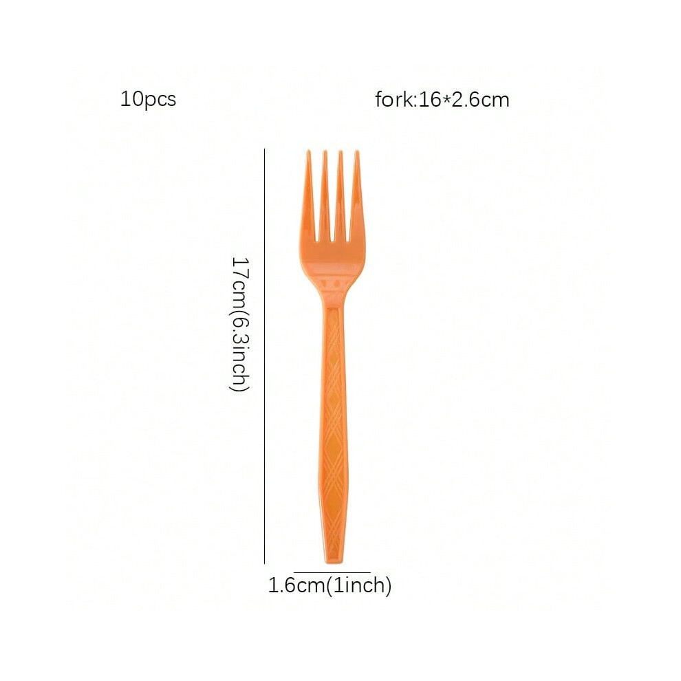 (10 orange forks) Thanksgiving themed flag decoration disposable turkey pumpkin party tableware set maple leaf paper plate paper towel