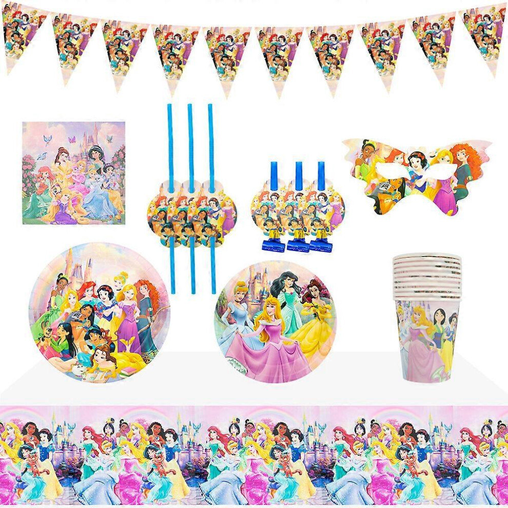 (As show, One size) New 247pcs Seven Princess Theme Party Decoration Atmosphere Decoration Paper Plate Paper Cup Tablecloth Disposable Tableware Set