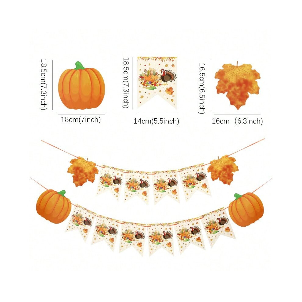 (Pumpkin letter flag 1PCS) Thanksgiving themed flag decoration disposable turkey pumpkin party tableware set maple leaf paper plate paper towel