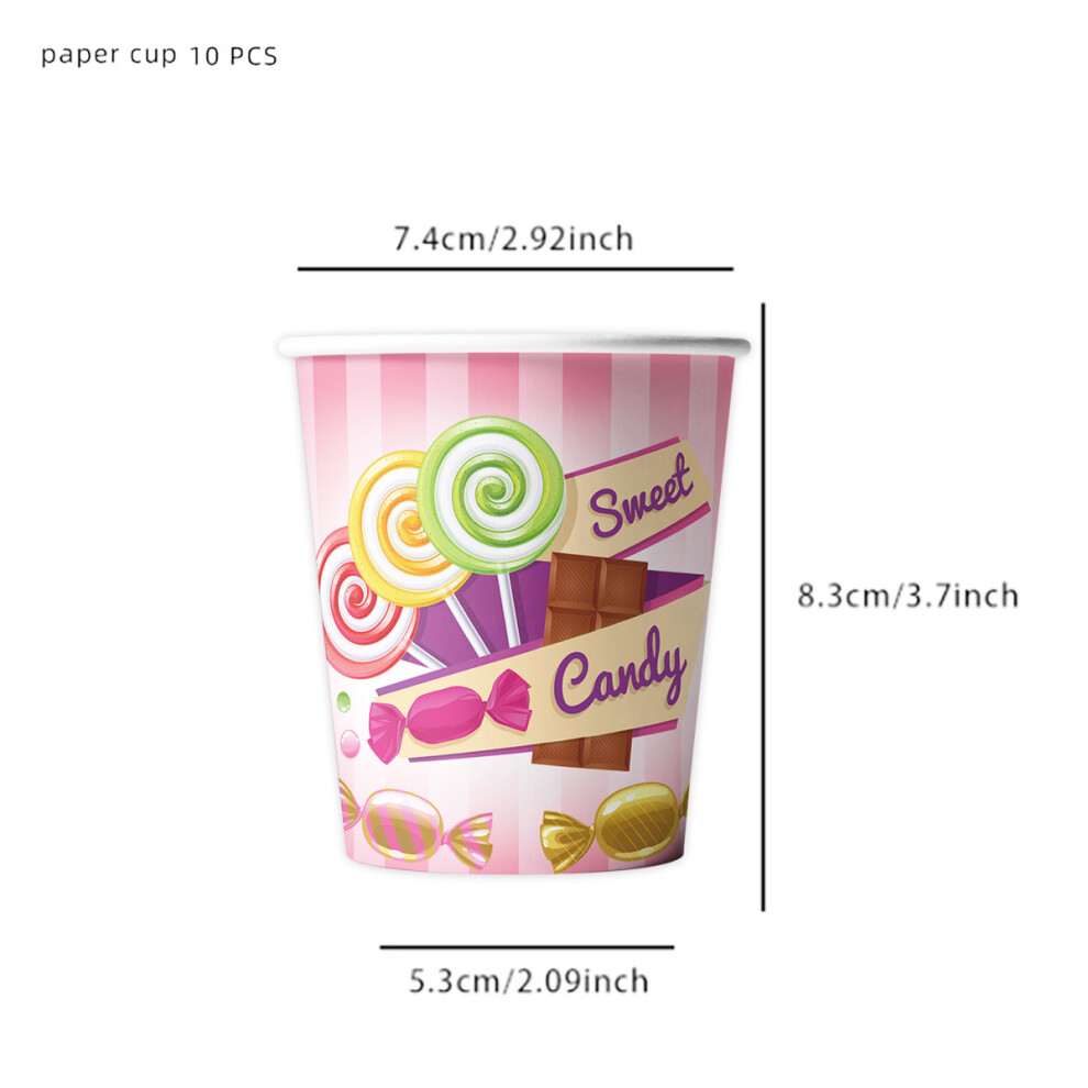 (Paper cups 10pcs) Lollipop pink girl birthday party decoration candy cake insert paper plate paper towel tablecloth tableware arrangement