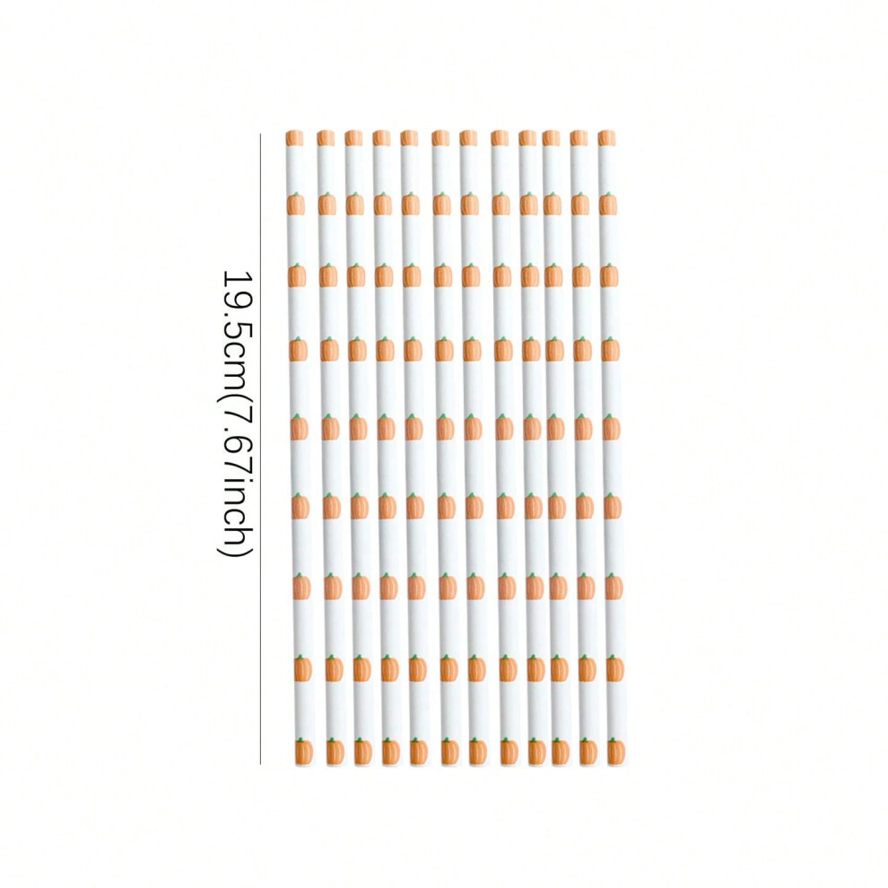 (10 pumpkin straws) Thanksgiving themed flag decoration disposable turkey pumpkin party tableware set maple leaf paper plate paper towel