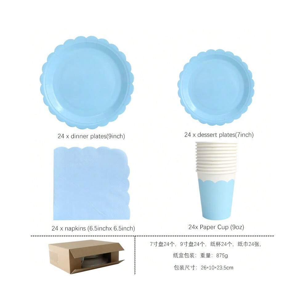 (Light blue 96-piece set-1) Blue paper plate, paper cup, paper towel set children's birthday holiday party disposable tableware paper plate dinner pla