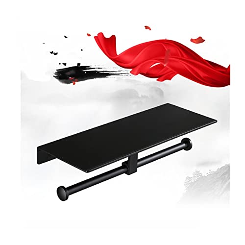 HXFFXHF Bathroom Shelves Floating Shelves Toilet Paper Holder Black Aluminum Bathroom Paper Holder Wall Mounted Storage Shelf Double Paper Racks Roll Paper Hooks for Bathroom Storage