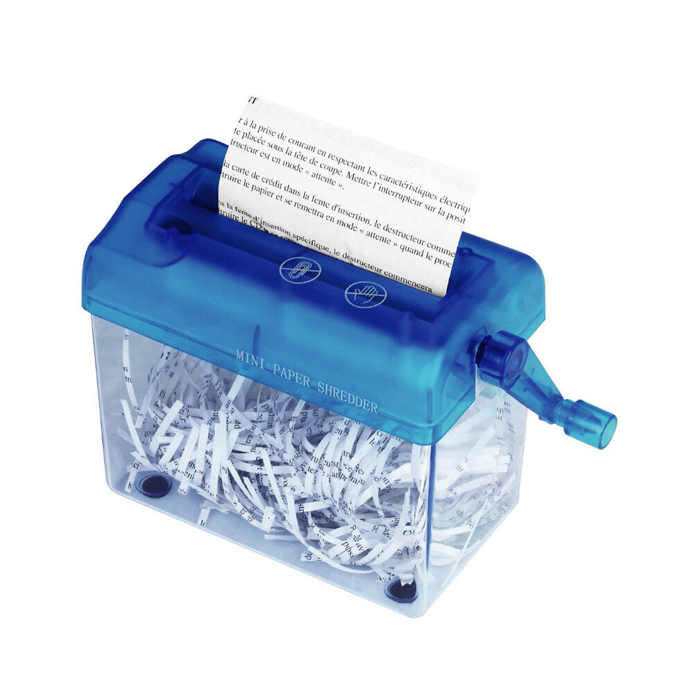 Plastic Manual Clear Paper Shredder A4 Cutting Machine for Office Use, Compact Blue Design, Lightweight and Easy to Operate