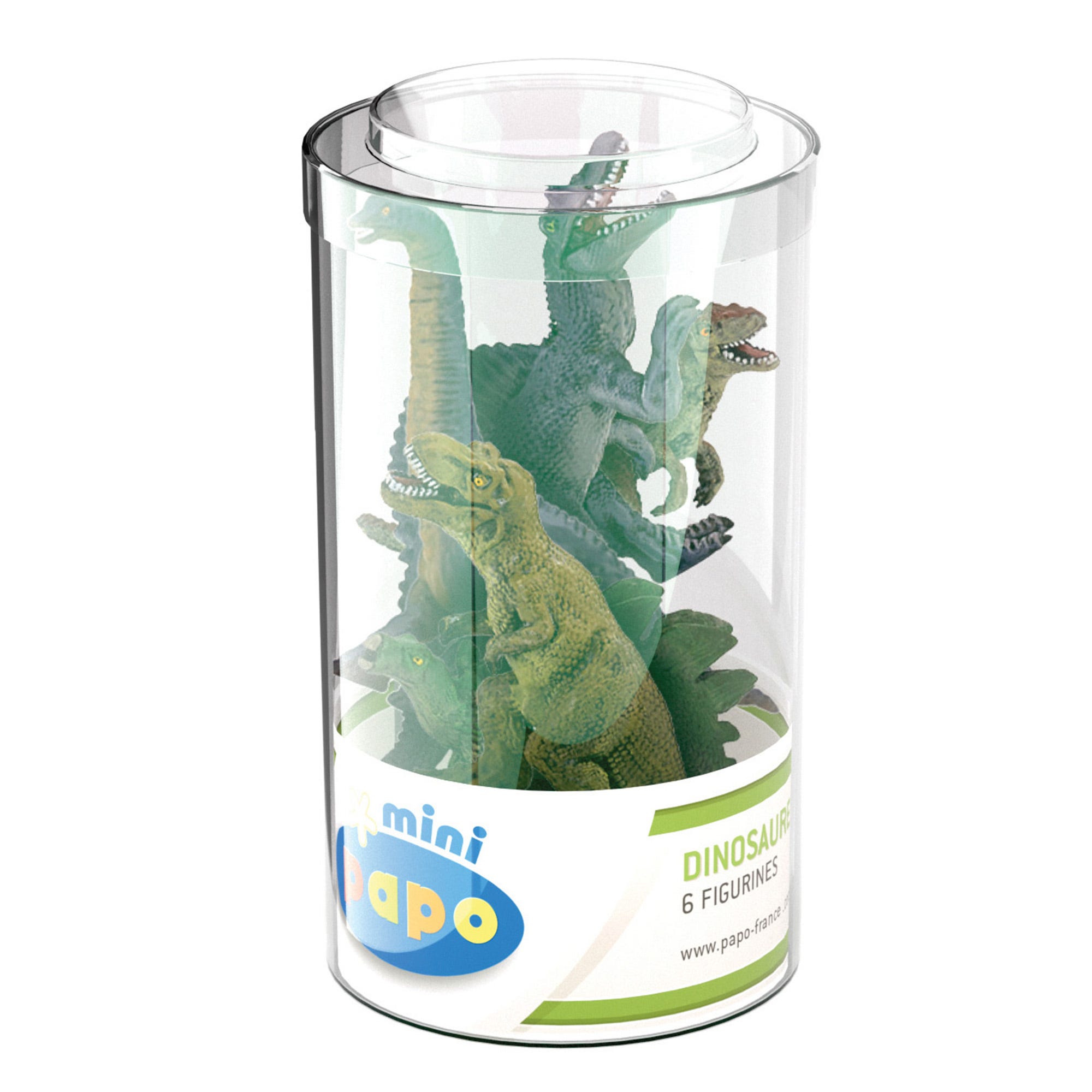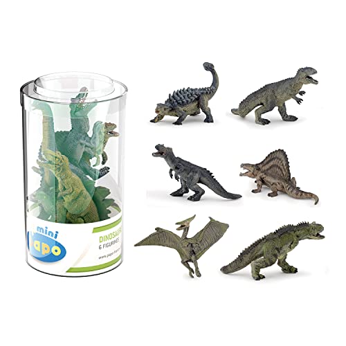 Papo Figurines, 33019 Mini Plus Dinosaurs Set 2 (Tube, 6 pcs), Multicolour