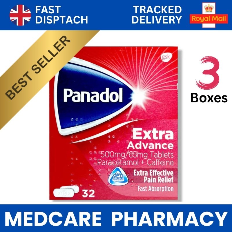 Panadol Extra Advance Tablets | 32 Tablets x3 Packs | Paracetamol Caffeine