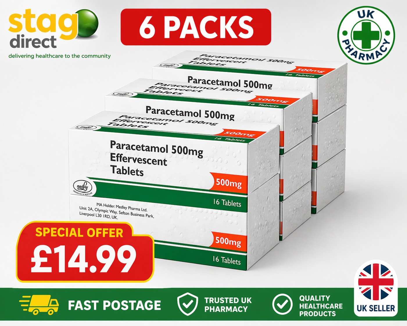 Paracetamol 500mg Soluble Tablets - 16 X 6 PACKS -MEDLEY BRAND