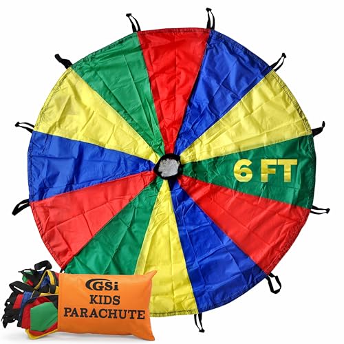 GSi Kids Play Parachute Rainbow Parachute Toy Tent Game for Children Gymnastics Cooperative Play and Outdoor Playground Activities (6 Feet)