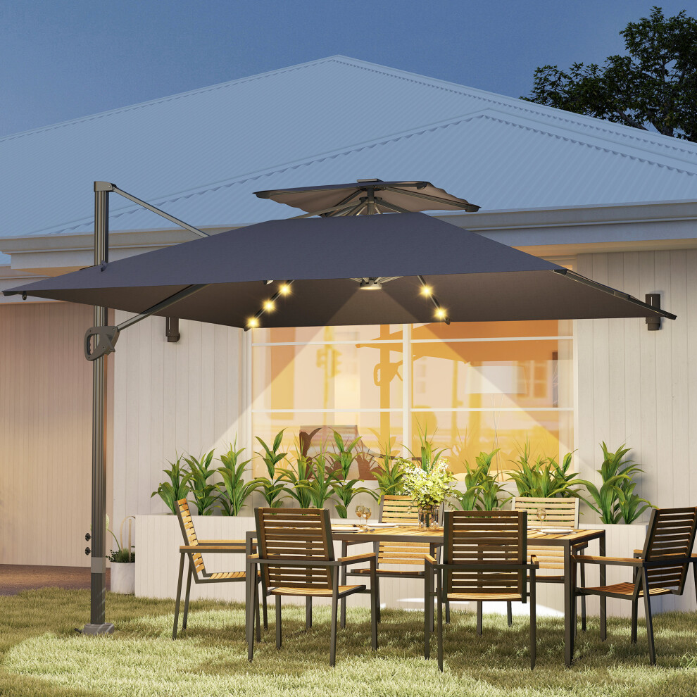 vidaXL Parasol with LED Lights and Aluminum Pole 270cm Anthracite