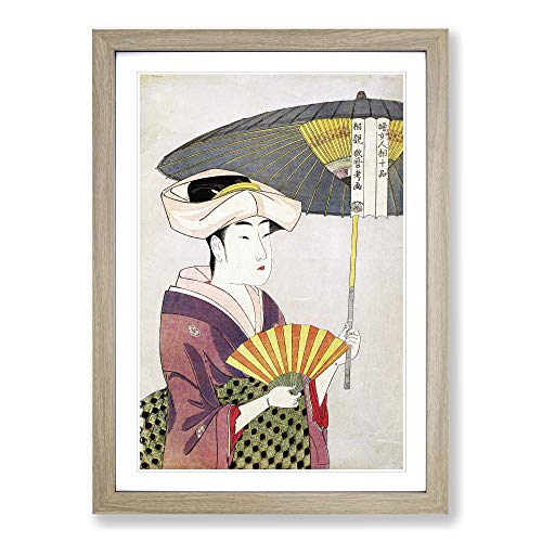 Big Box Art Woman with a Parasol by Kitagawa Utamaro Framed Wall Art Picture Print Ready to Hang, Oak A2 (62 x 45 cm)