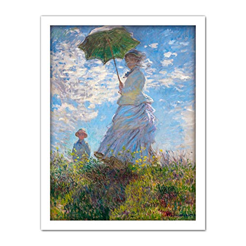 Fine Art Prints Claude Monet Woman With A Parasol Madame Monet And Her Son Large Wall Art Print Canvas Premium Poster Mural, 18 x 24 inches