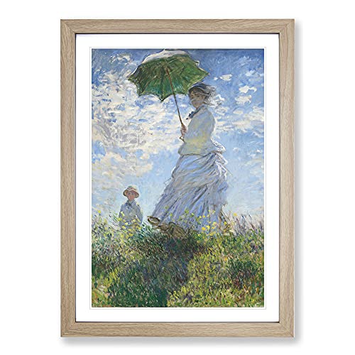 Big Box Art Woman with A Parasol by Claude Monet Framed Wall Art Picture Print Ready to Hang, Oak A2 (62 x 45 cm)