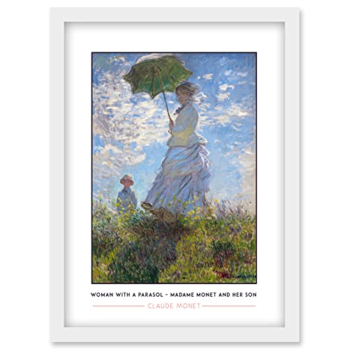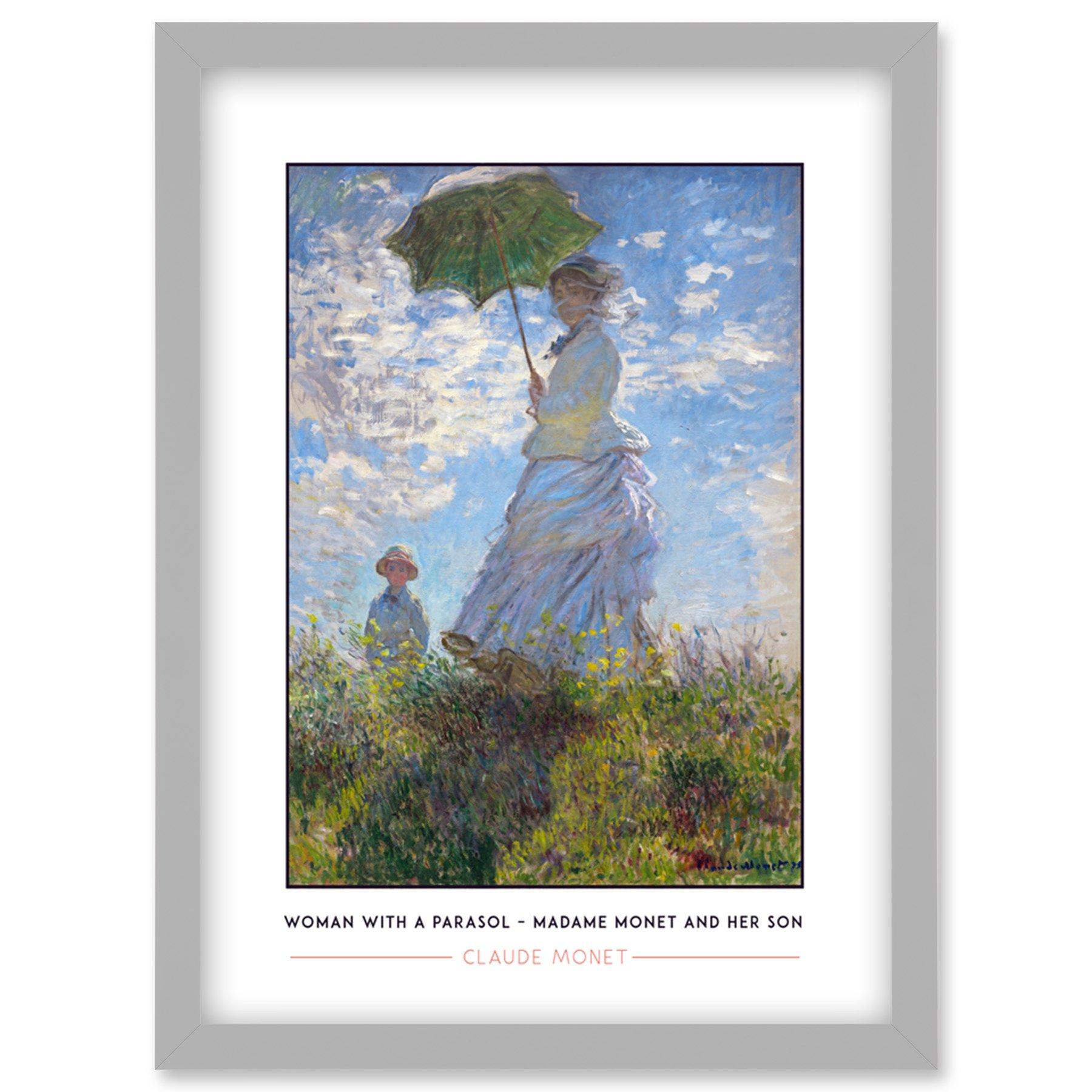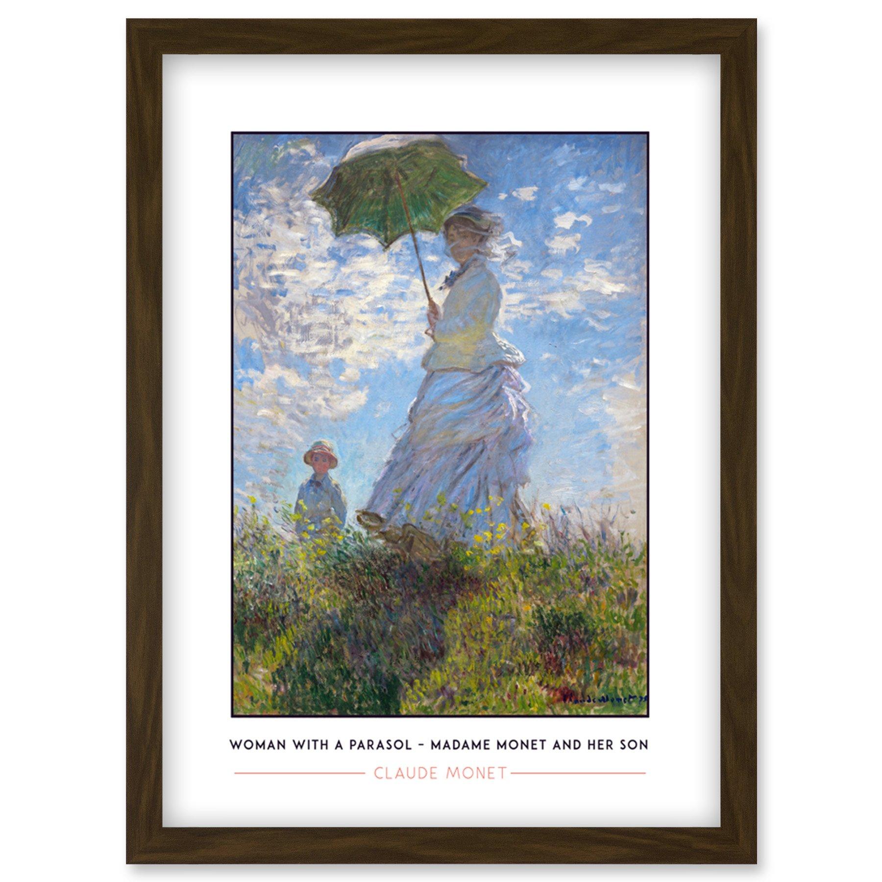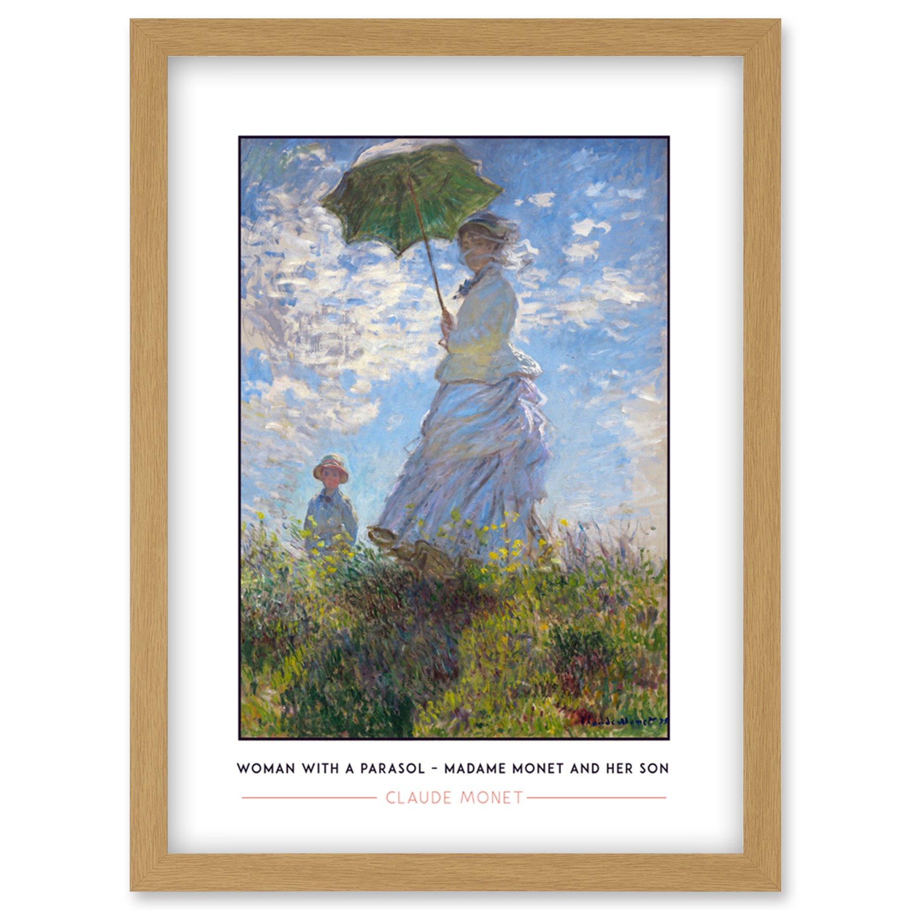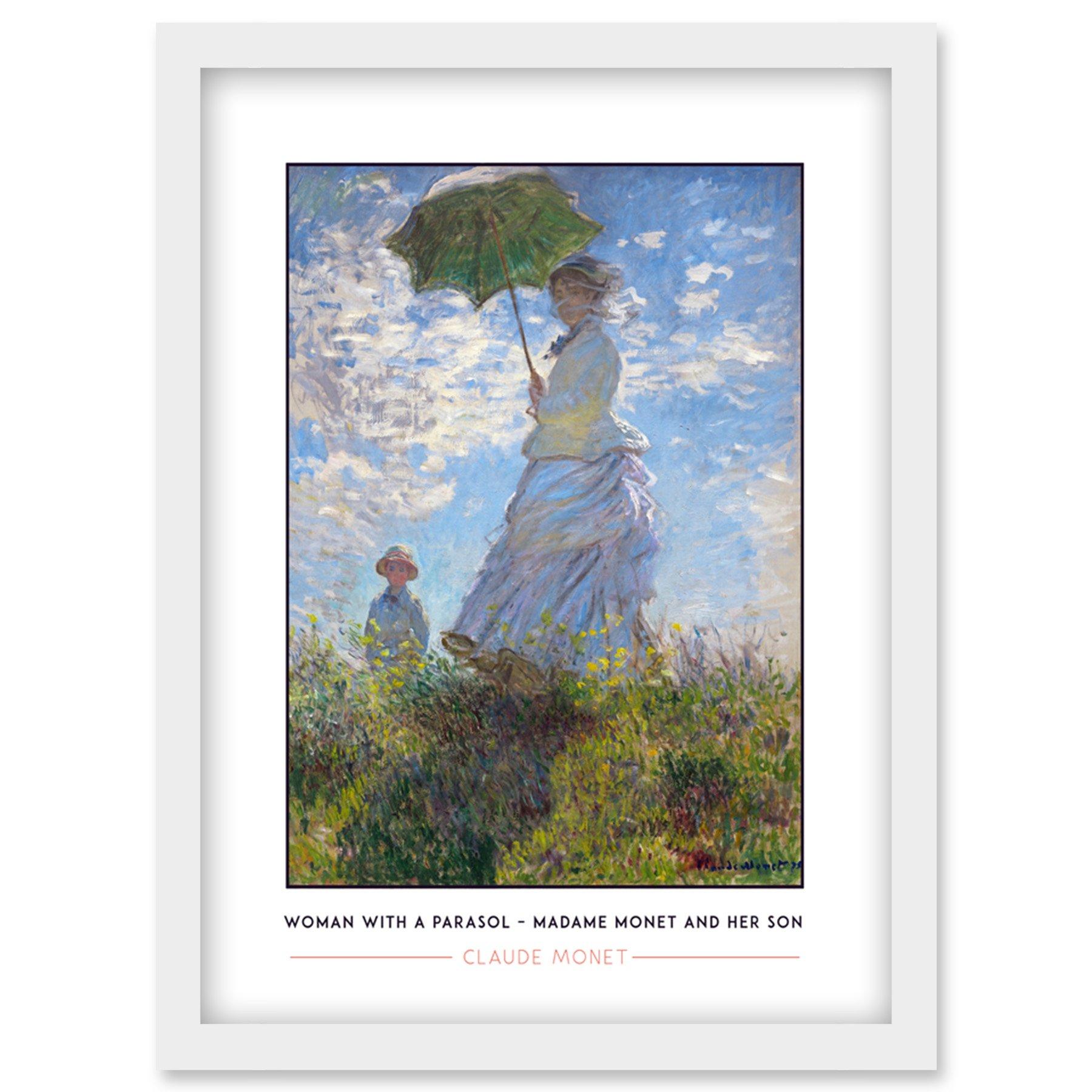 Claude Monet Woman With A Parasol - Madame Monet And Her Son Impressionist Painting Artwork Framed Wall Art Print A4