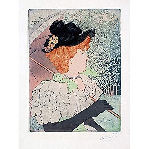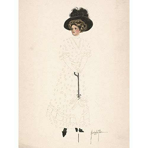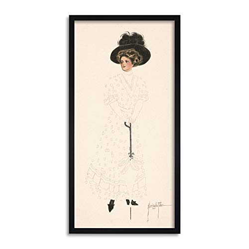 Artery8 Fidler Woman Parasol Dress Black Hat Drawing Large Wall Art Poster Print Thick Paper 18X24 Inch