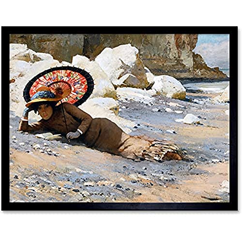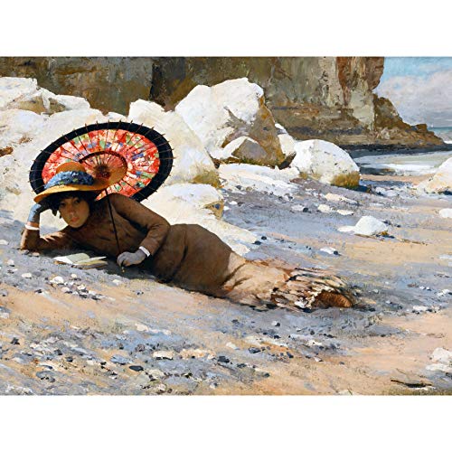 Pearce Reading Shore Woman Parasol Beach Painting Unframed Wall Art Print Poster Home Decor Premium