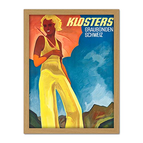 Klosters Switzerland Woman Parasol Travel Vintage Advert Large Framed Art Print Poster Wall Decor 18x24 in