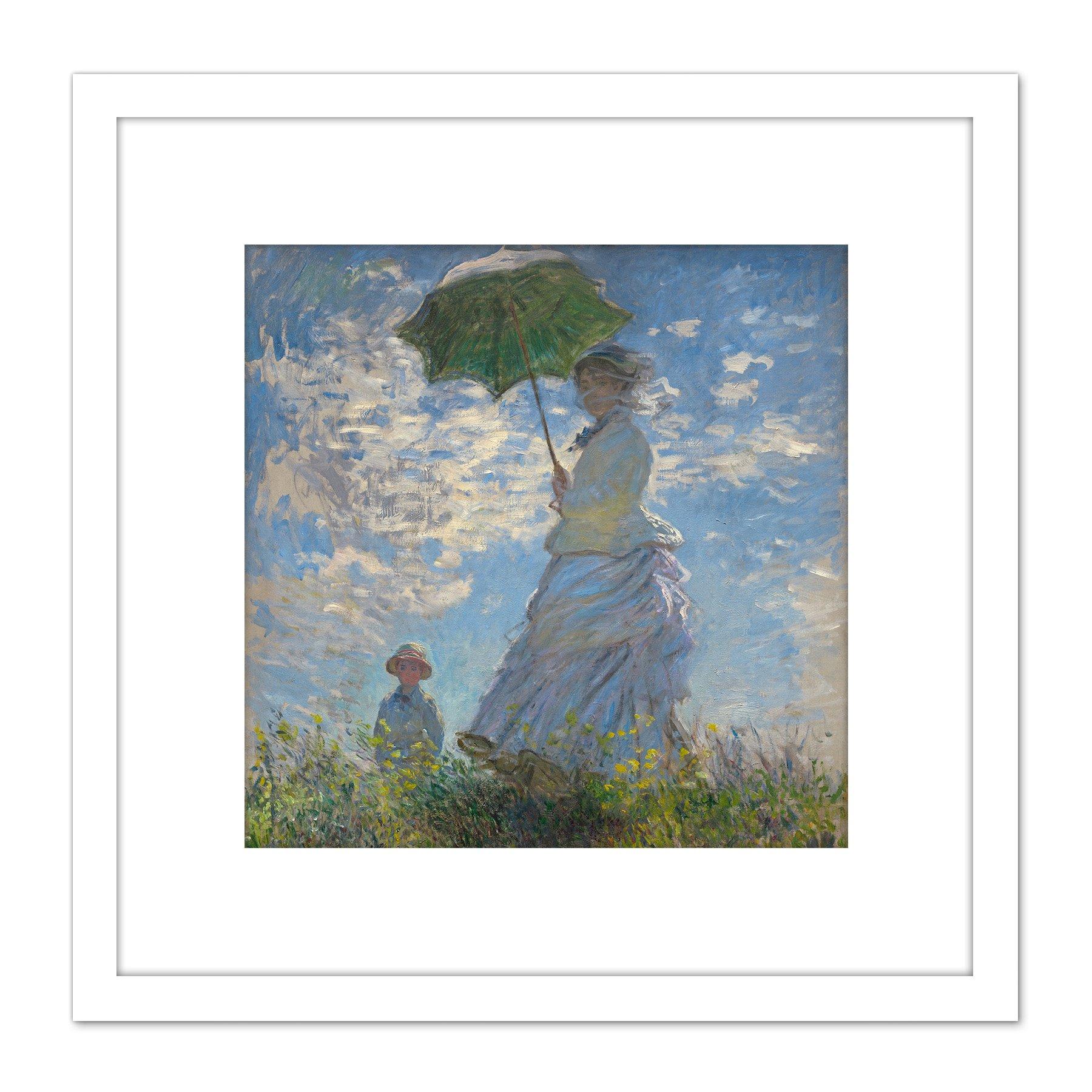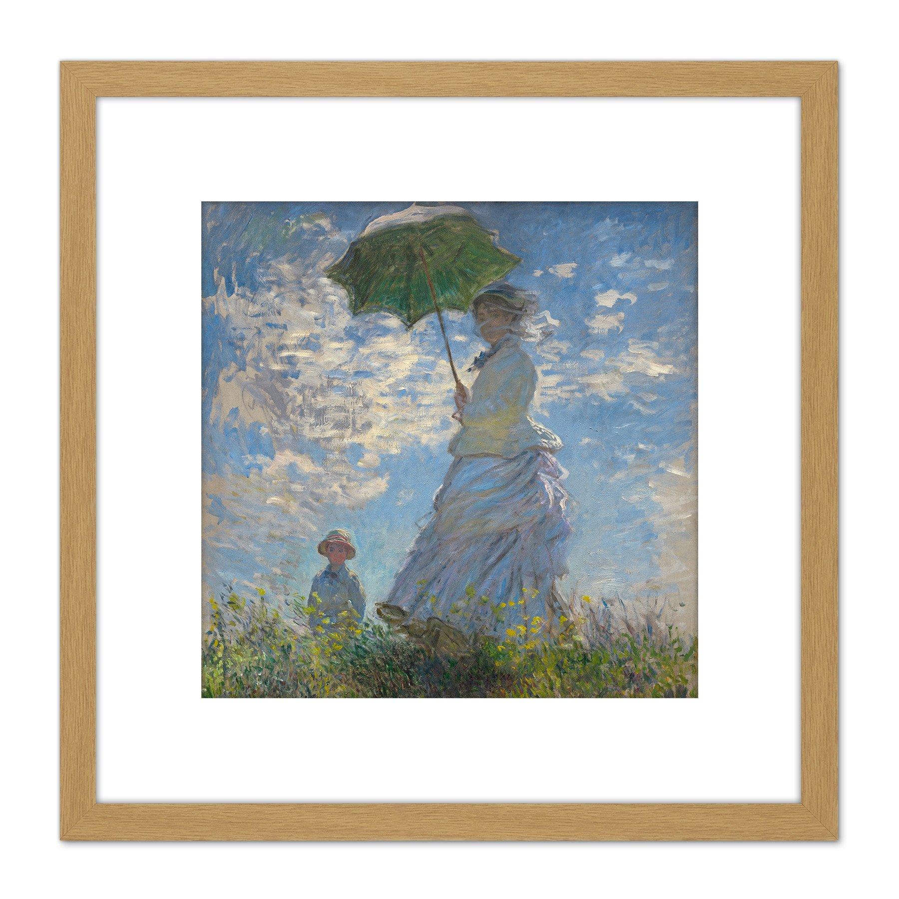 Claude Monet Woman With A Parasol Madame Monet And Her Son 8X8 Inch Square Wooden Framed Wall Art Print Picture with Mount