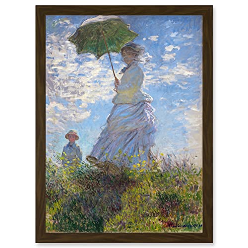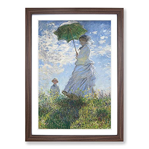 Big Box Art Woman with A Parasol by Claude Monet Framed Wall Art Picture Print Ready to Hang, Walnut A2 (62 x 45 cm)